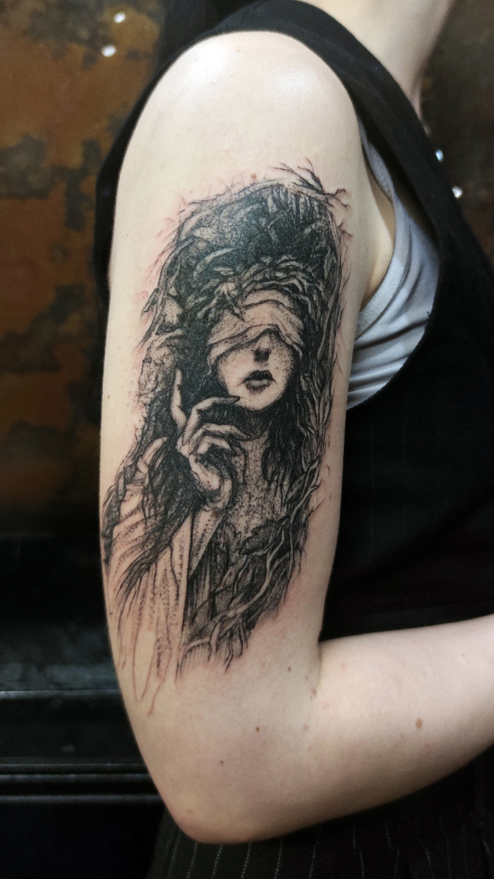 J’adore cette façon de tatouer car il me rappelle la sensation du croquis d’après modèle vivant. C’est un dessin authentique directement sur la peau, avec tout ce que ça implique d’errances, d’irrégularités, et de spontanéité.