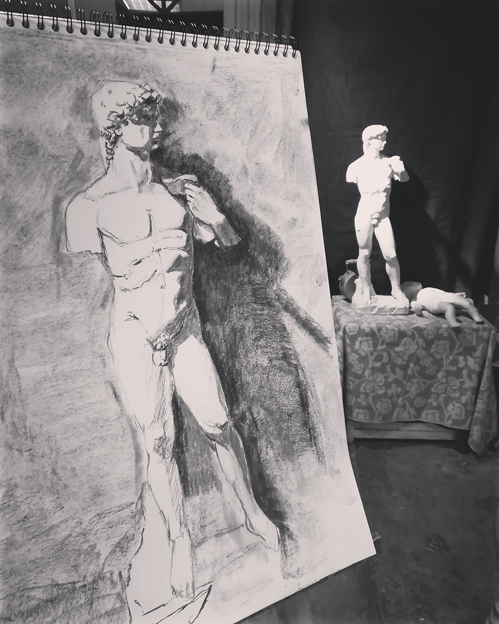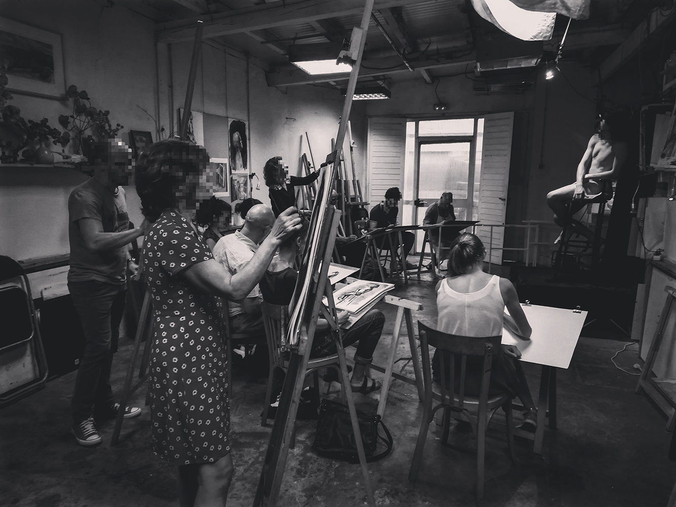 J’enseigne le dessin artistique à travers le prisme de la perception : comment on regarde, comment on traite l’info, comment notre cerveau fonctionne lorsqu’on dessine. Mes cours s’articulent autour du dessin d’observation exclusivement (natures mortes, modèle vivant) à la façon d’un cours de sport, pour acquérir des bases solides qui seront utiles à toute pratique se basant sur le dessin.