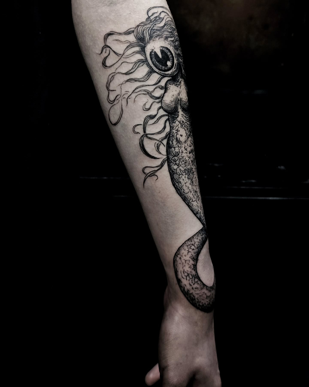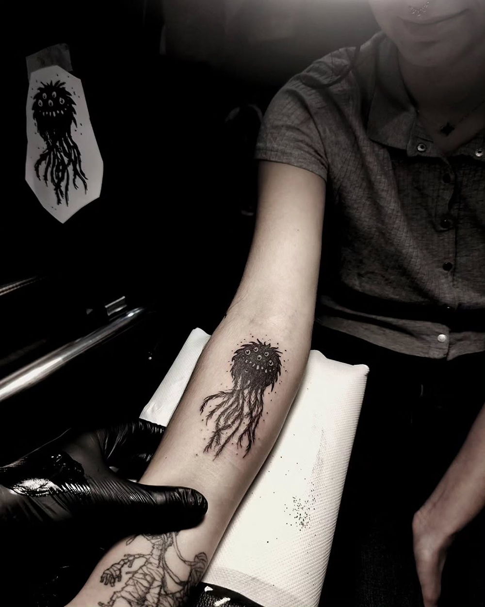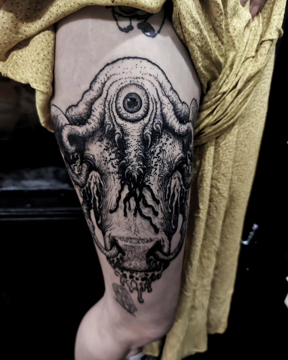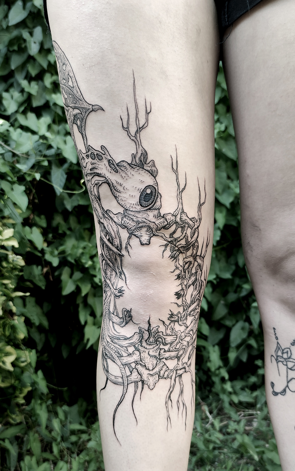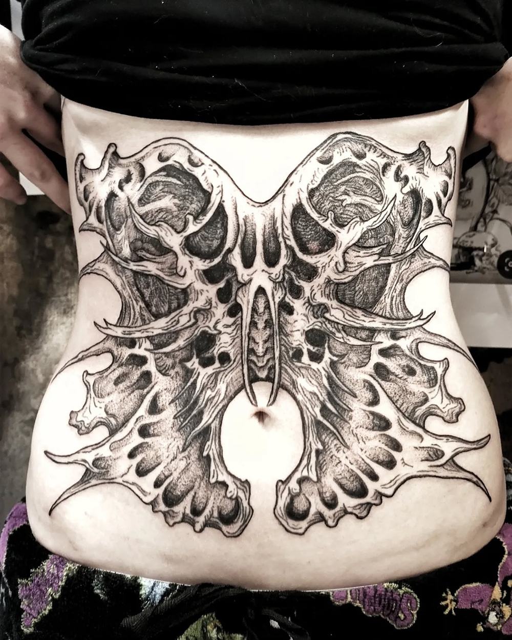 J’ai quelques thèmes de prédilection, mais je suis ouvert à tout type de projet de tatouage (j’aime faire autre chose que des monstres de temps en temps ^^). J’ai une préférence pour les projets au long cours : bras, dos, jambes complèt.e.s etc.