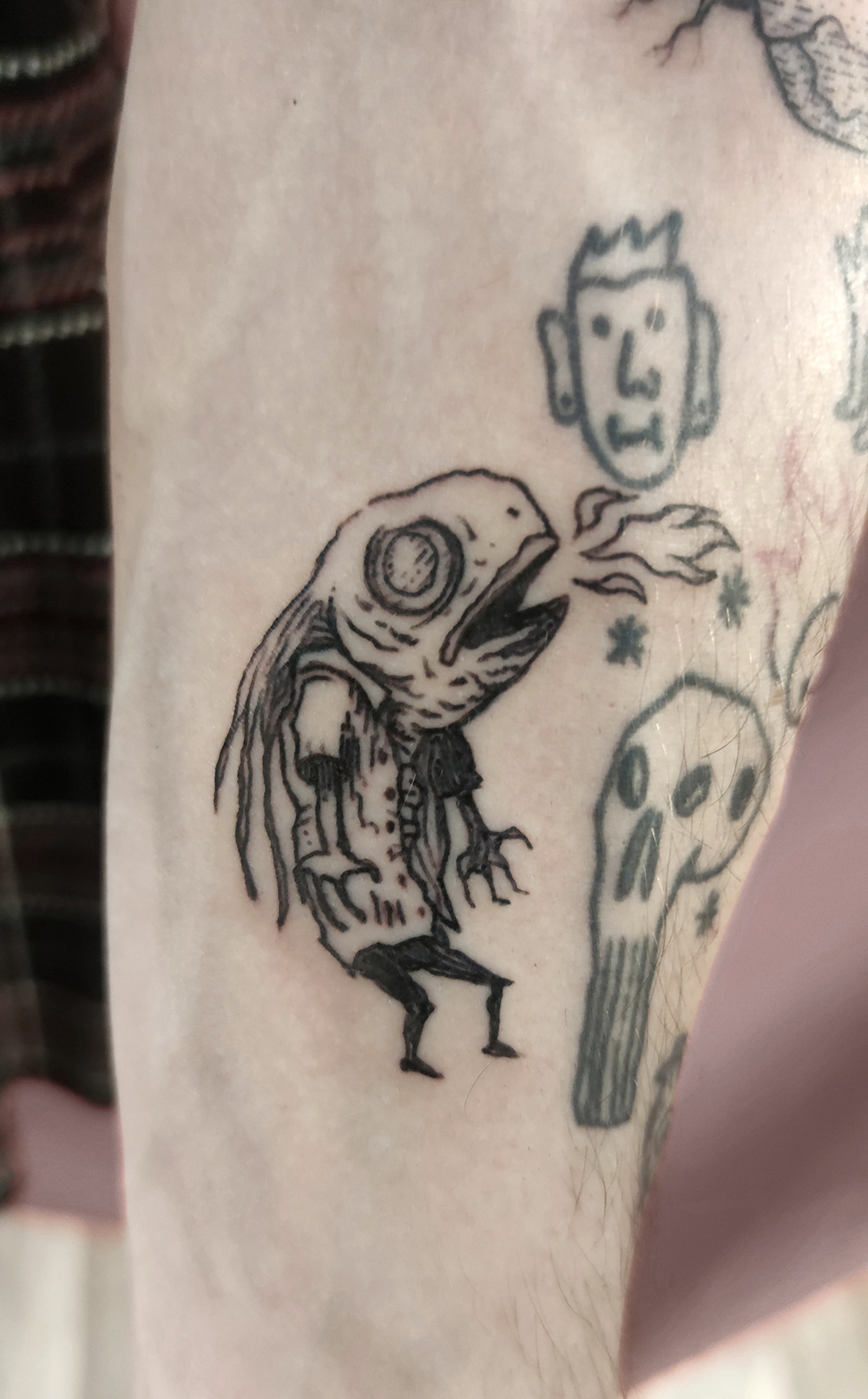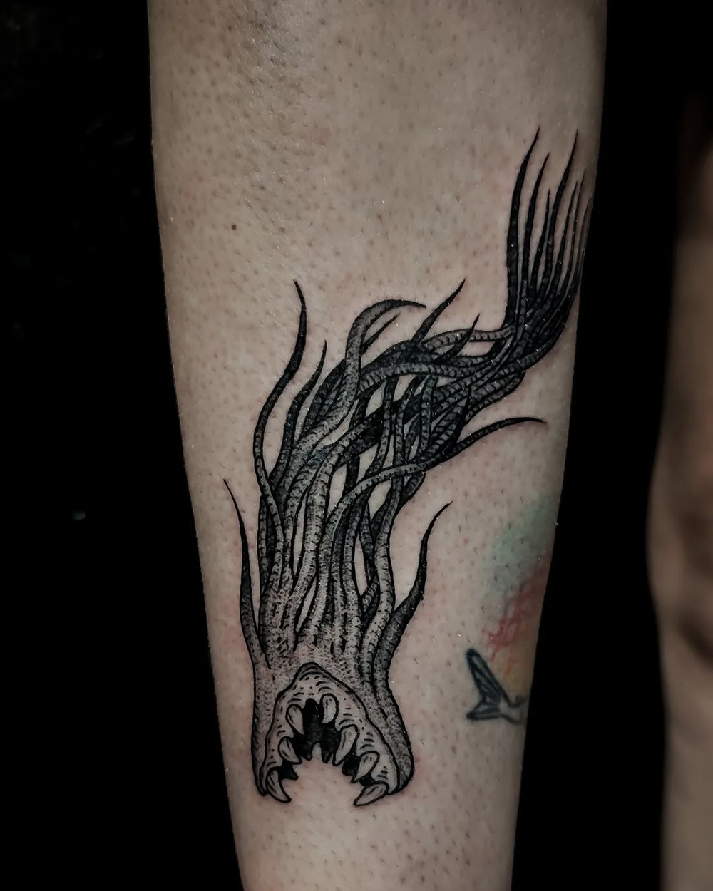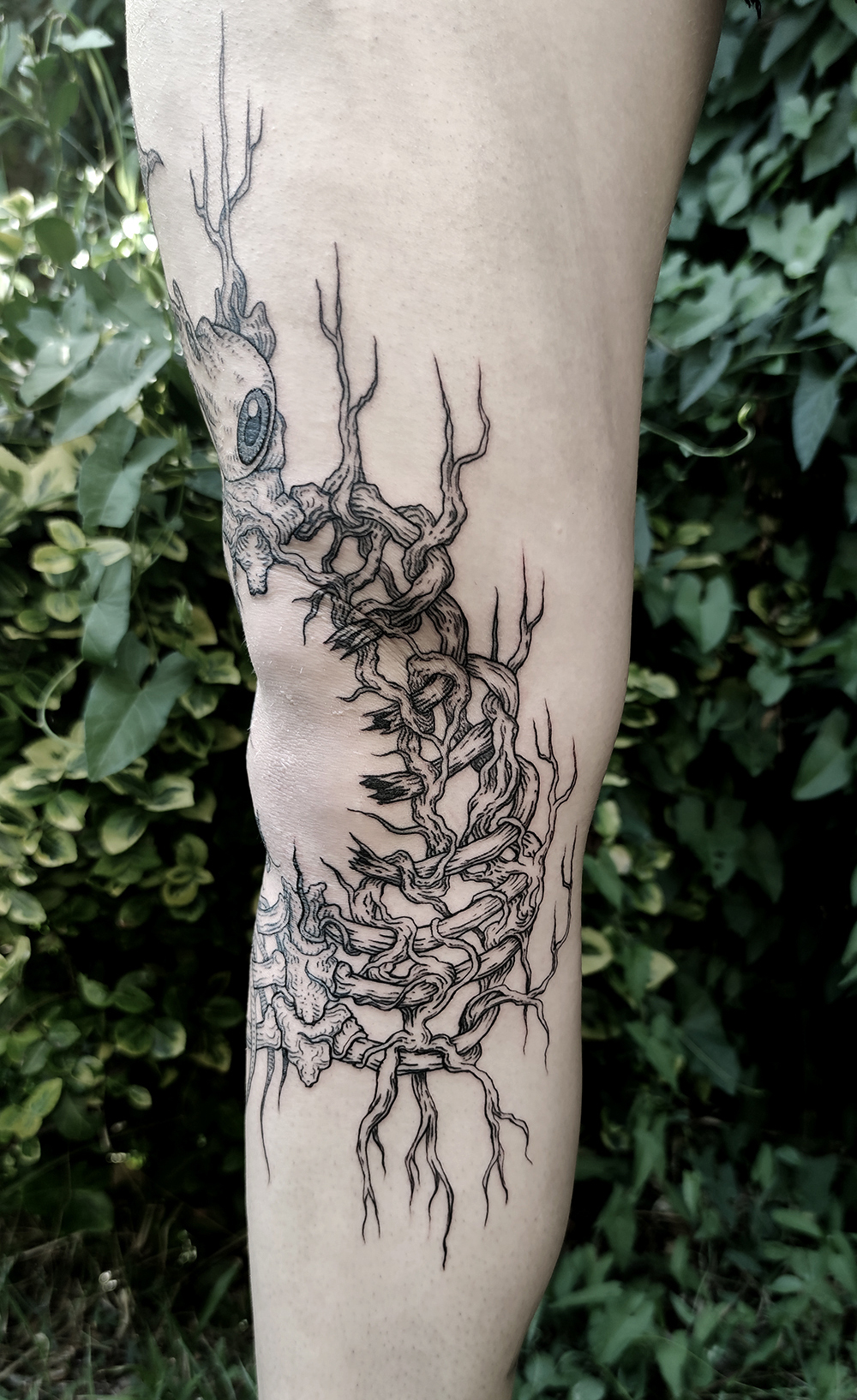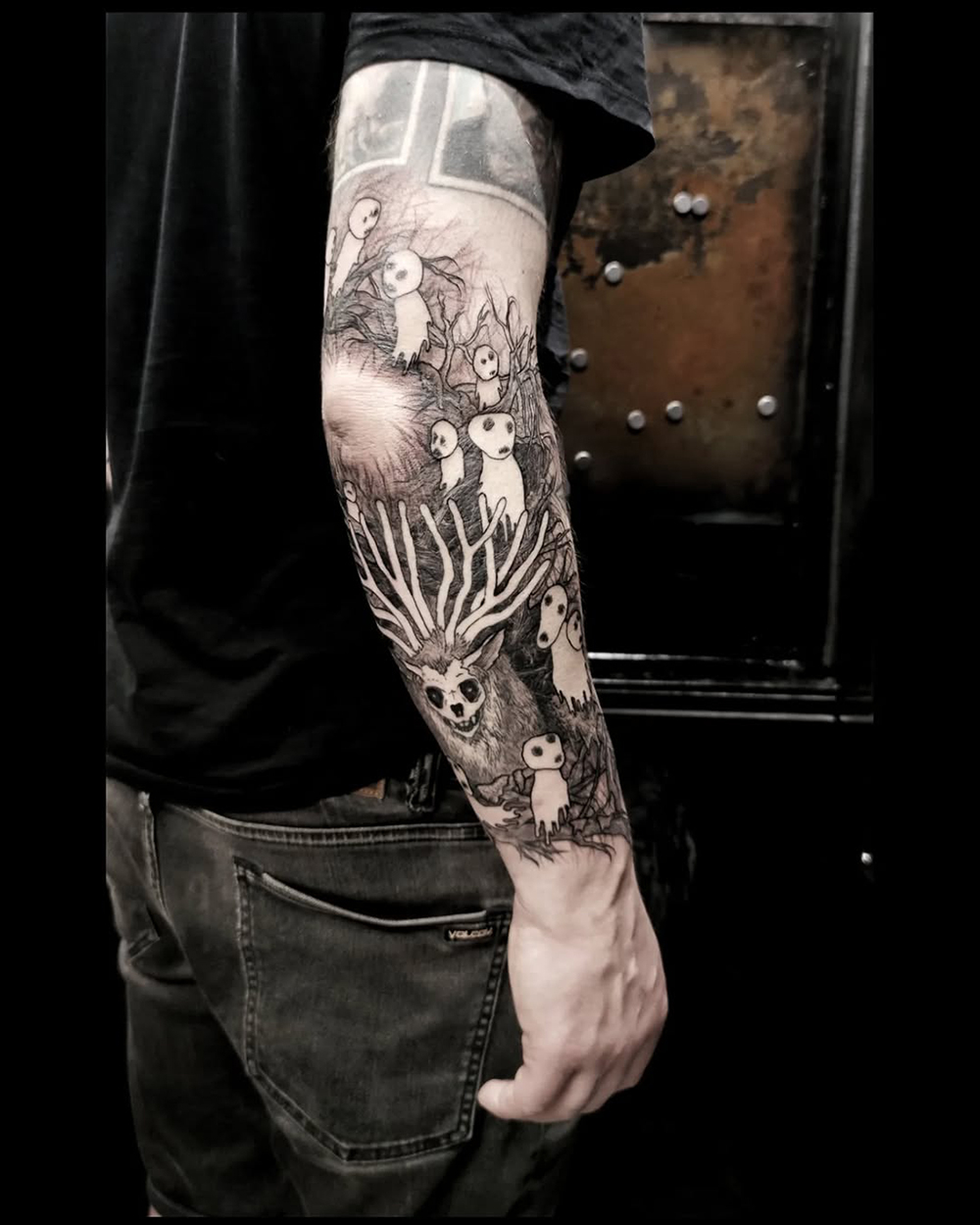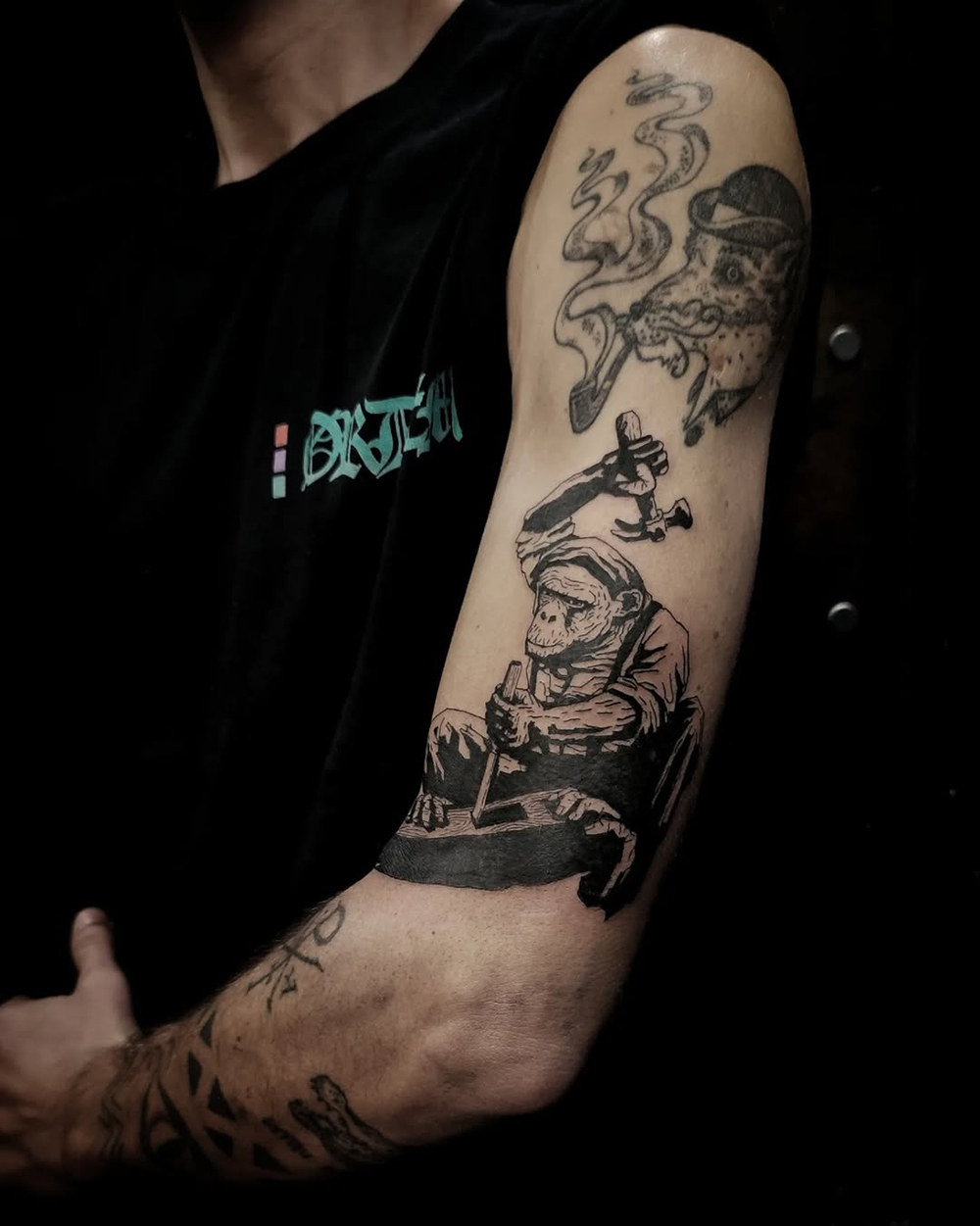 J’ai quelques thèmes de prédilection, mais je suis ouvert à tout type de projet de tatouage (j’aime faire autre chose que des monstres de temps en temps ^^). J’ai une préférence pour les projets au long cours : bras, dos, jambes complèt.e.s etc.