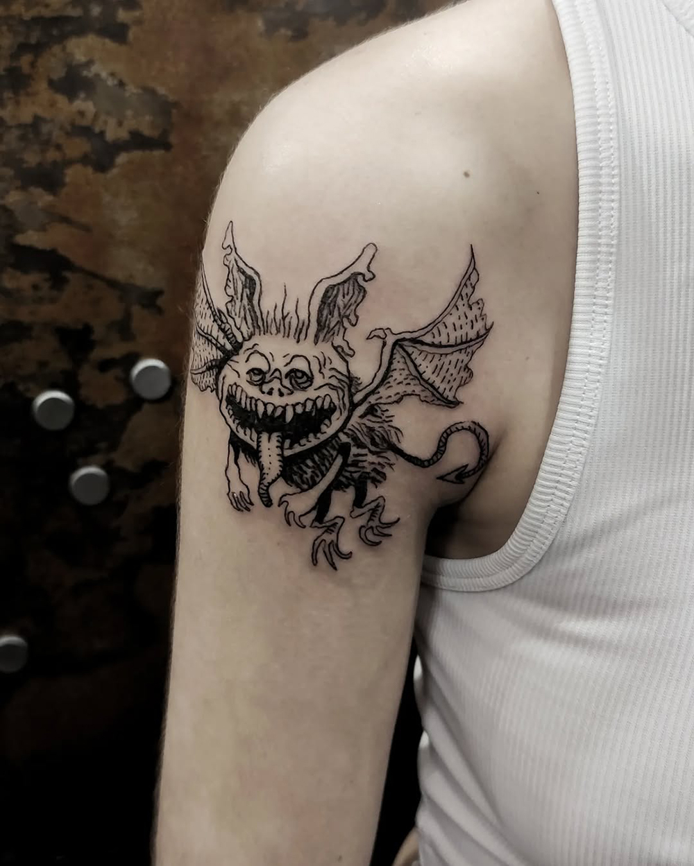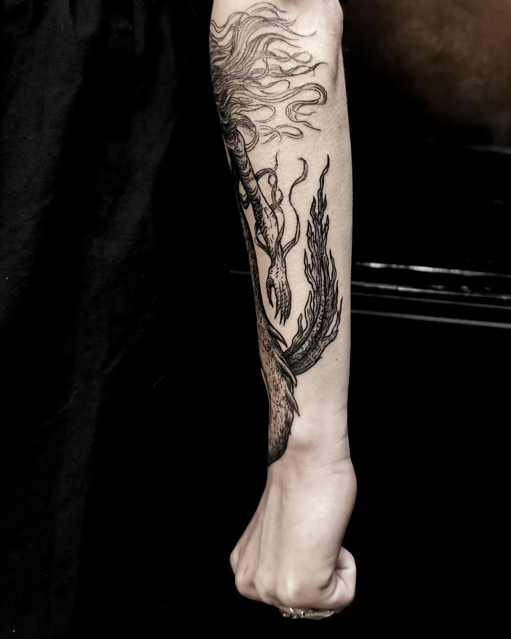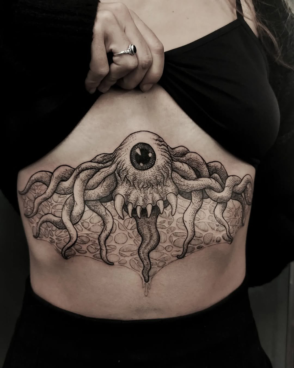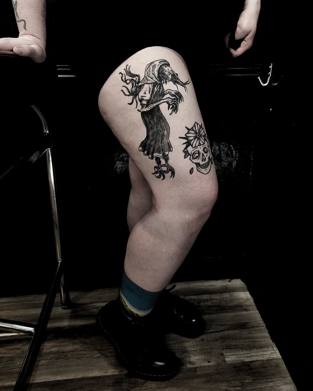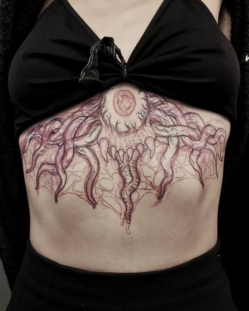 J’ai quelques thèmes de prédilection, mais je suis ouvert à tout type de projet de tatouage (j’aime faire autre chose que des monstres de temps en temps ^^). J’ai une préférence pour les projets au long cours : bras, dos, jambes complèt.e.s etc.