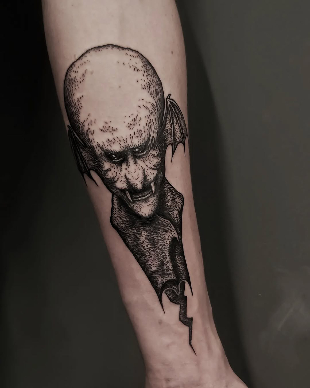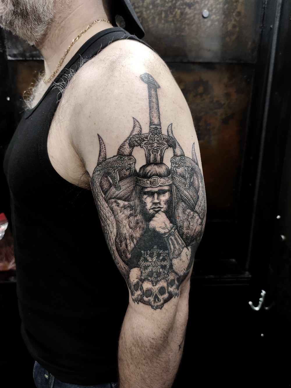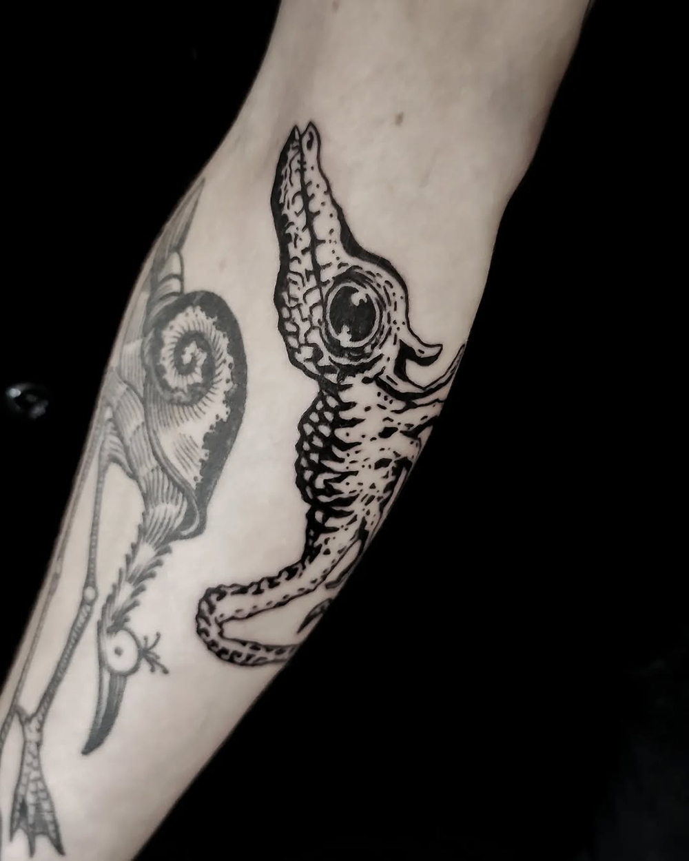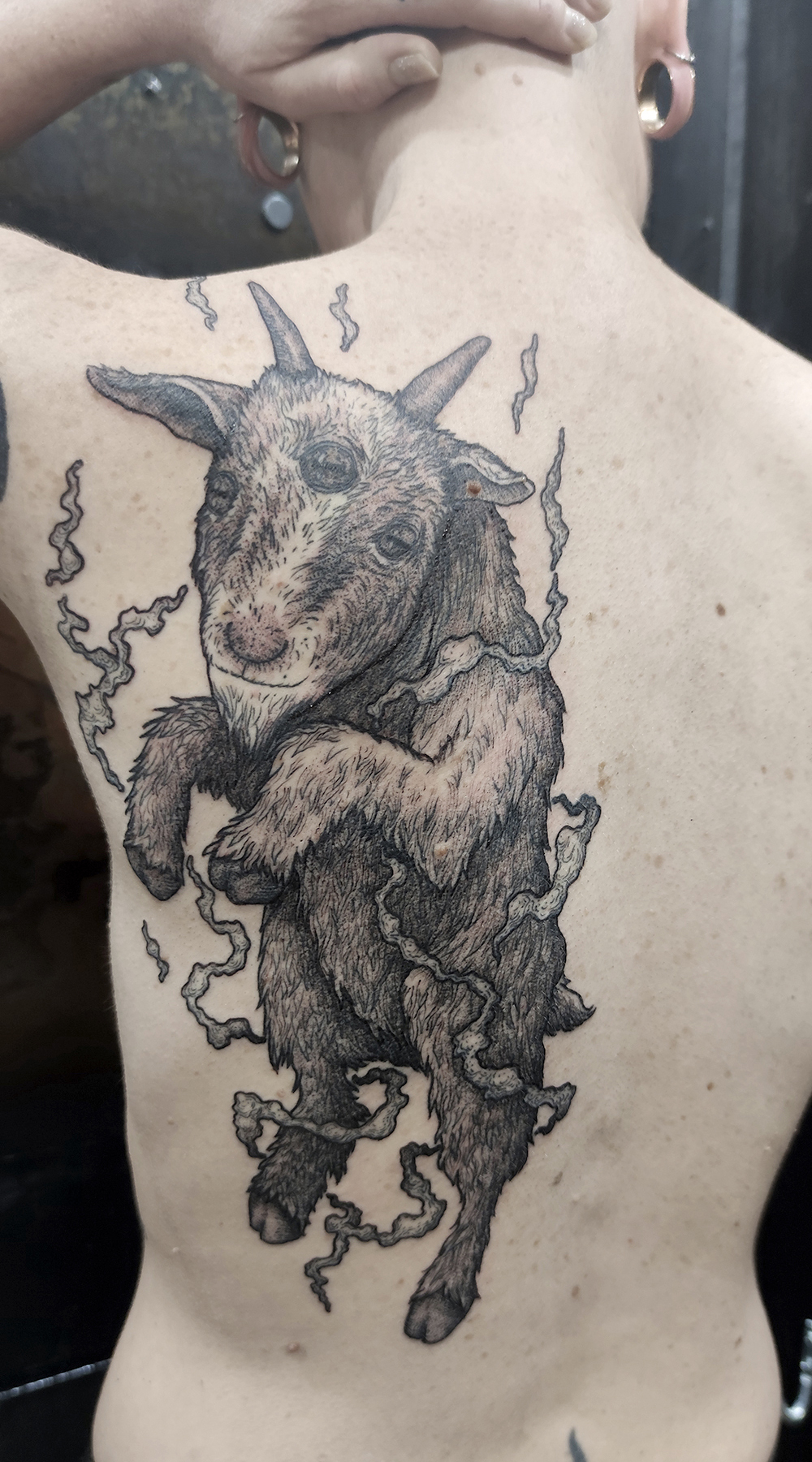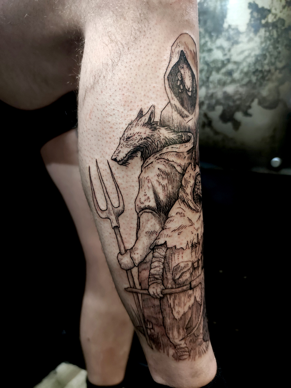 J’ai quelques thèmes de prédilection, mais je suis ouvert à tout type de projet de tatouage (j’aime faire autre chose que des monstres de temps en temps ^^). J’ai une préférence pour les projets au long cours : bras, dos, jambes complèt.e.s etc.
