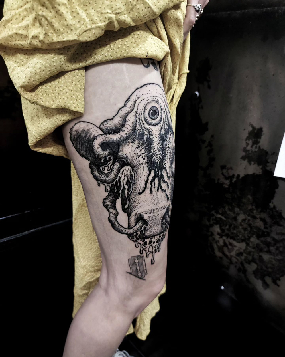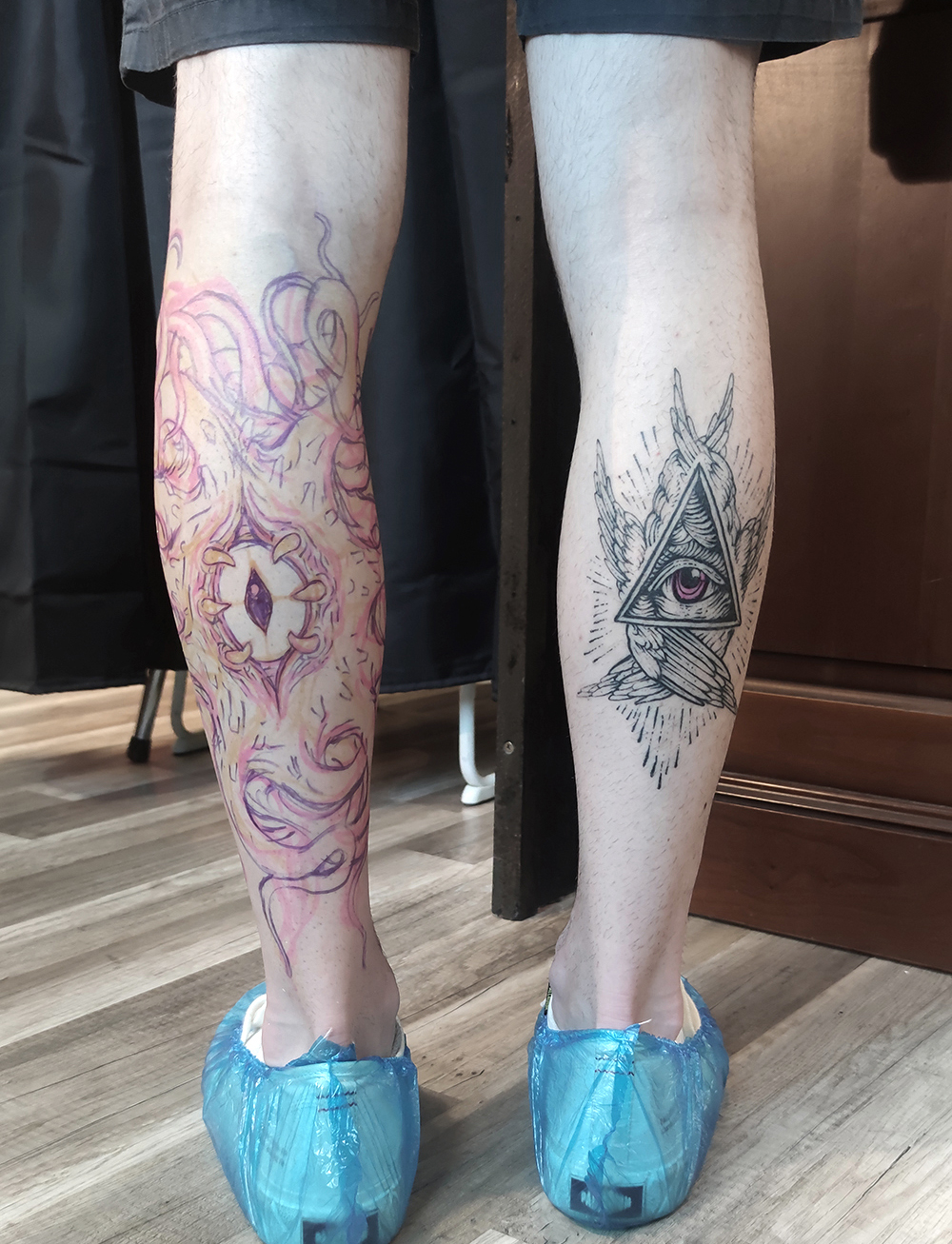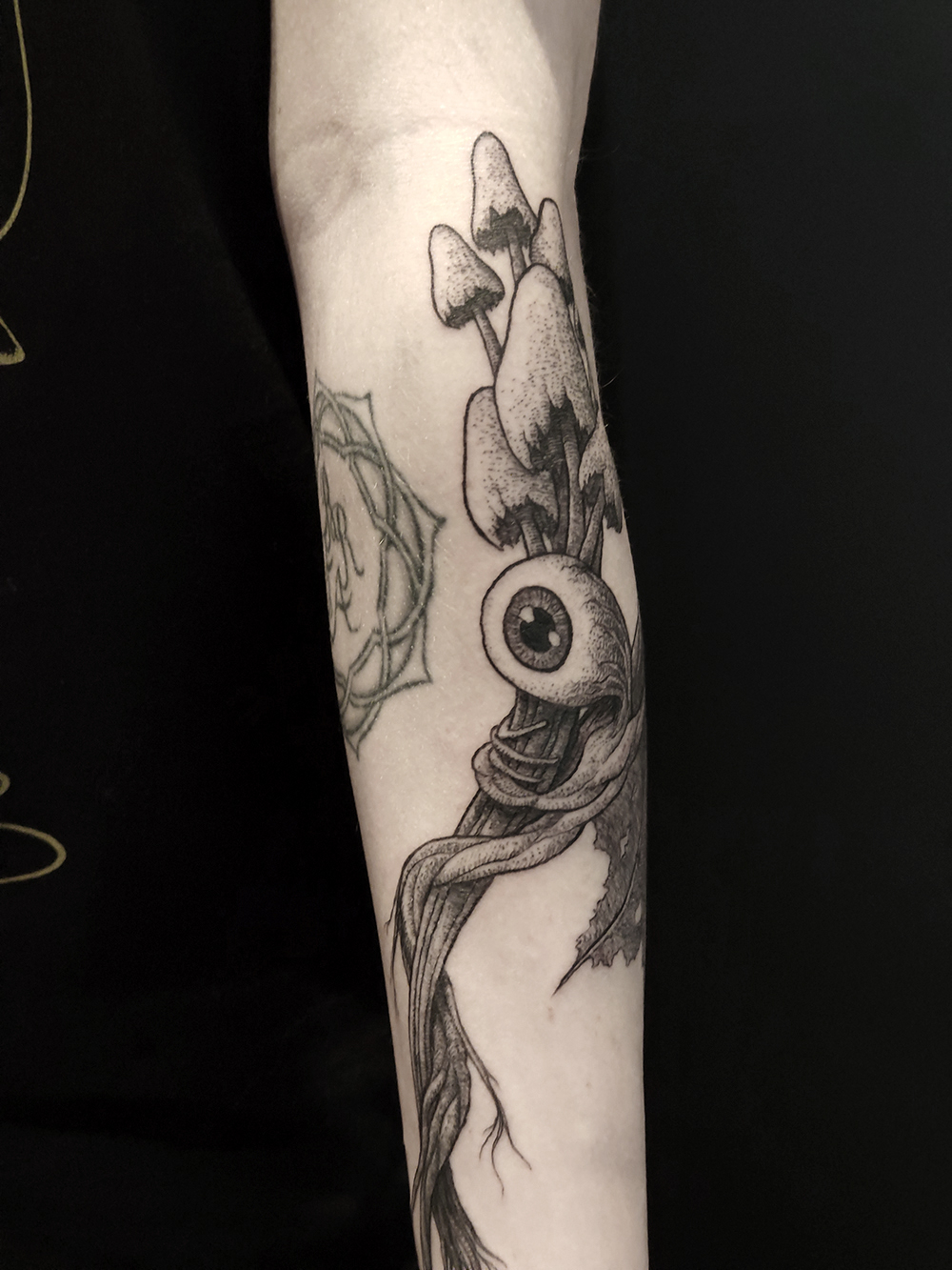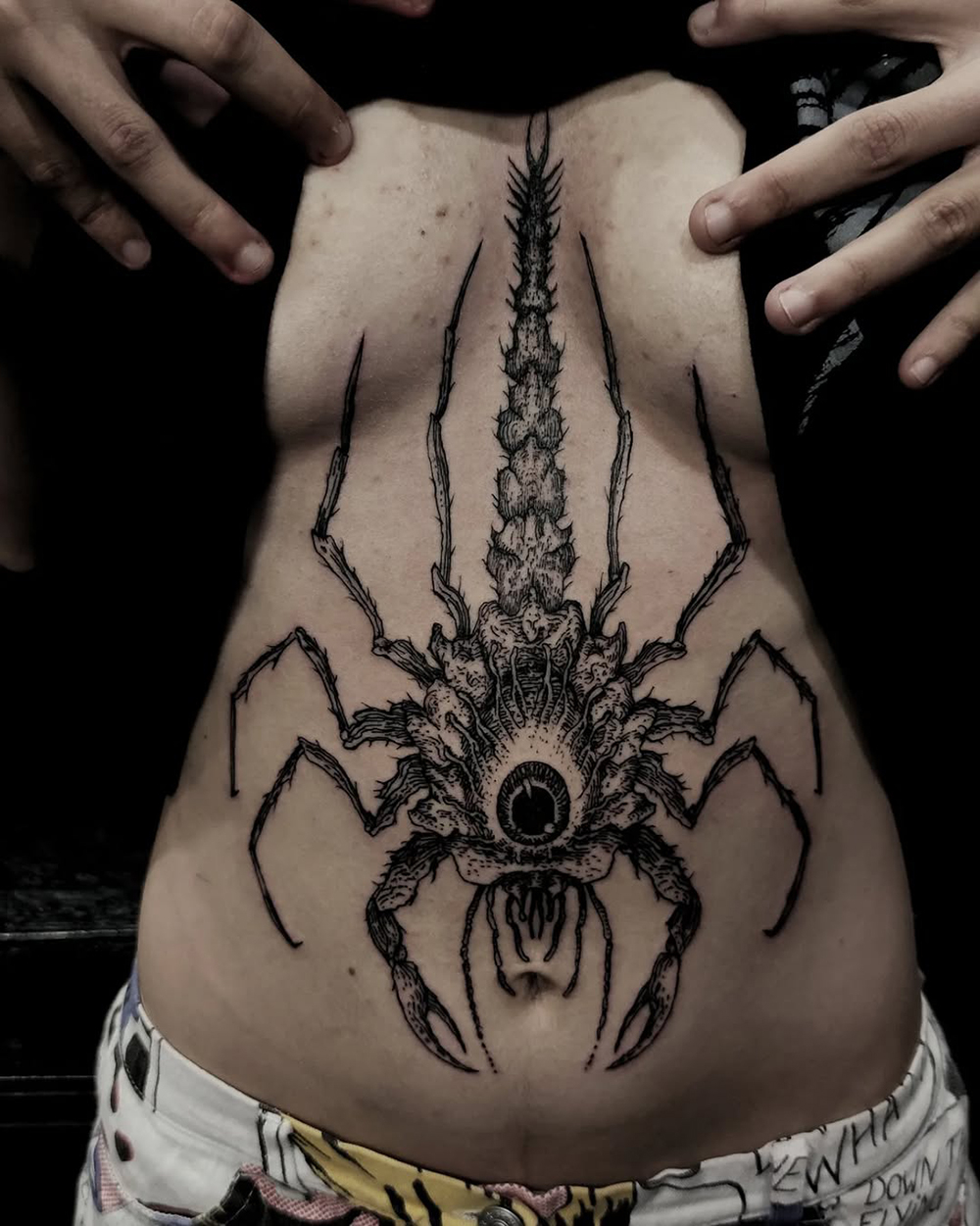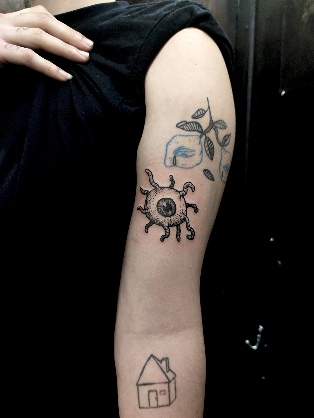 Les tattoos « moyens » ( entre un A6 et un A5 / 10 à 20cm ), surtout des flashs, un peu de freehand, un peu de custom… Beaucoup de globes oculaires…