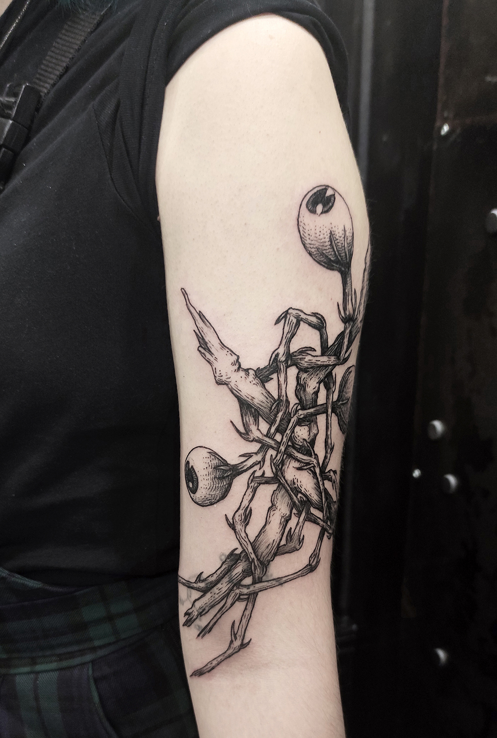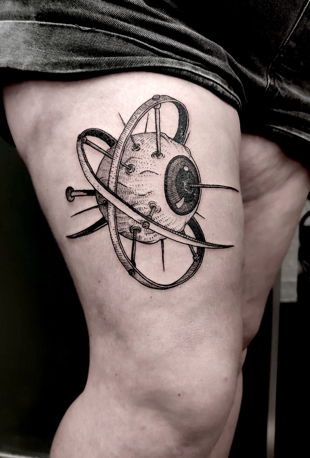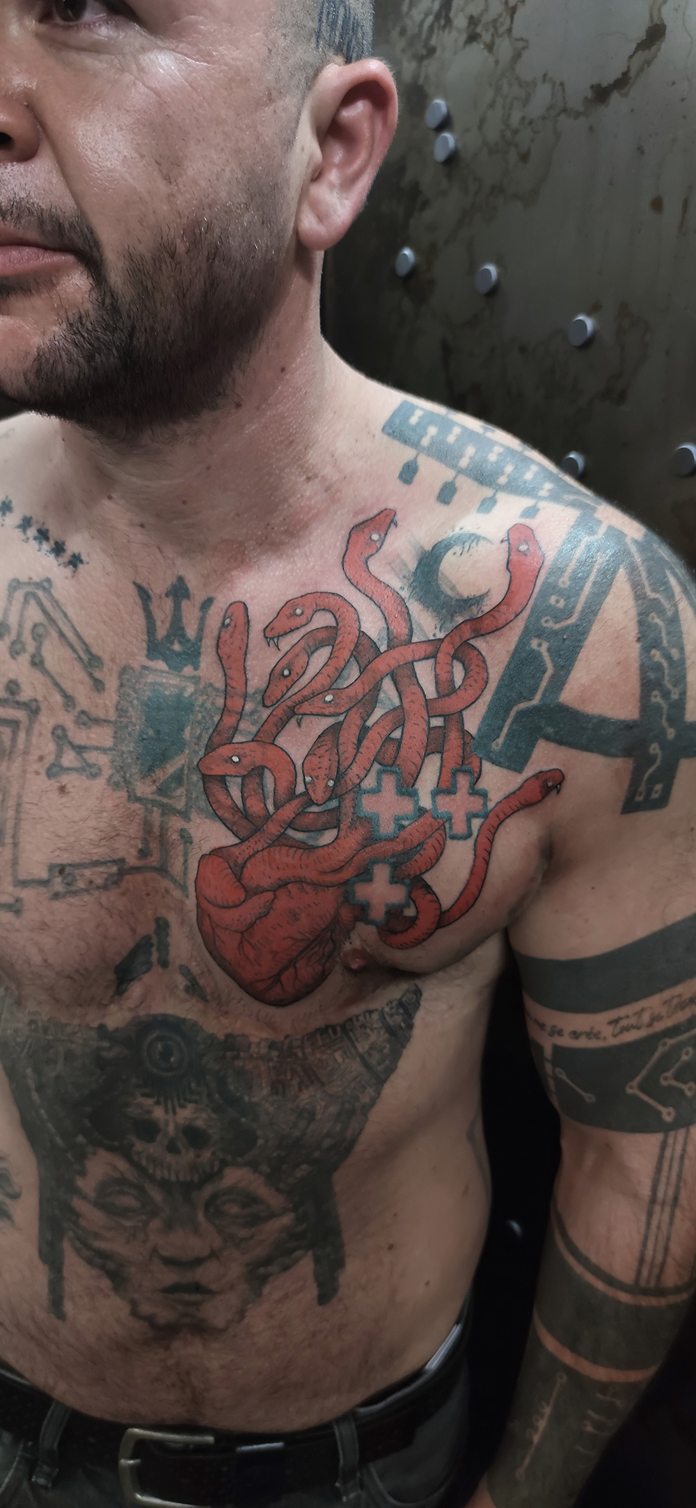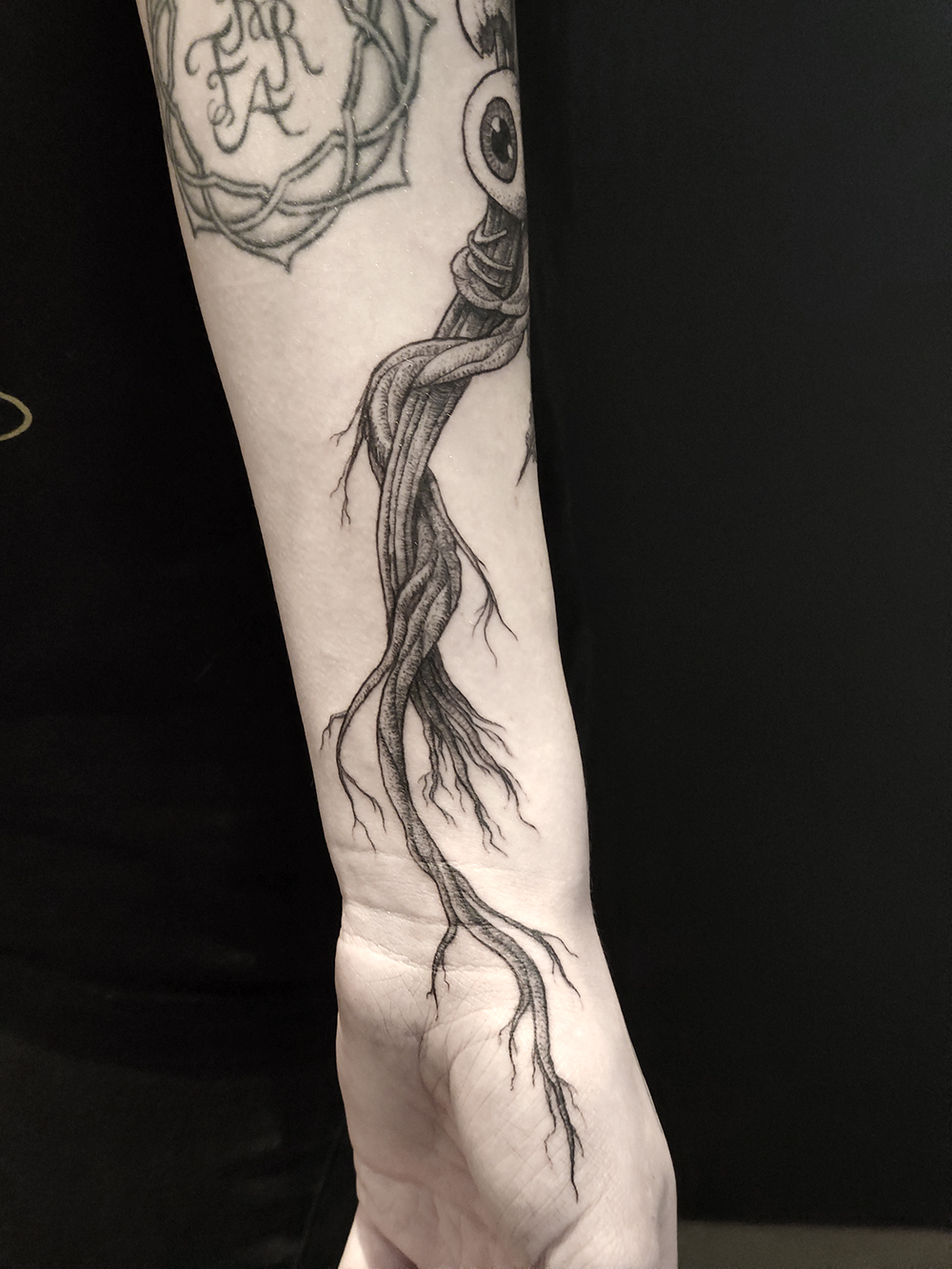 Les tattoos « moyens » ( entre un A6 et un A5 / 10 à 20cm ), surtout des flashs, un peu de freehand, un peu de custom… Beaucoup de globes oculaires…