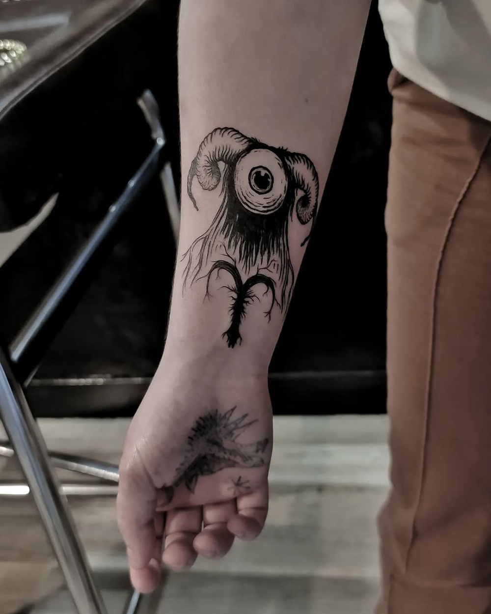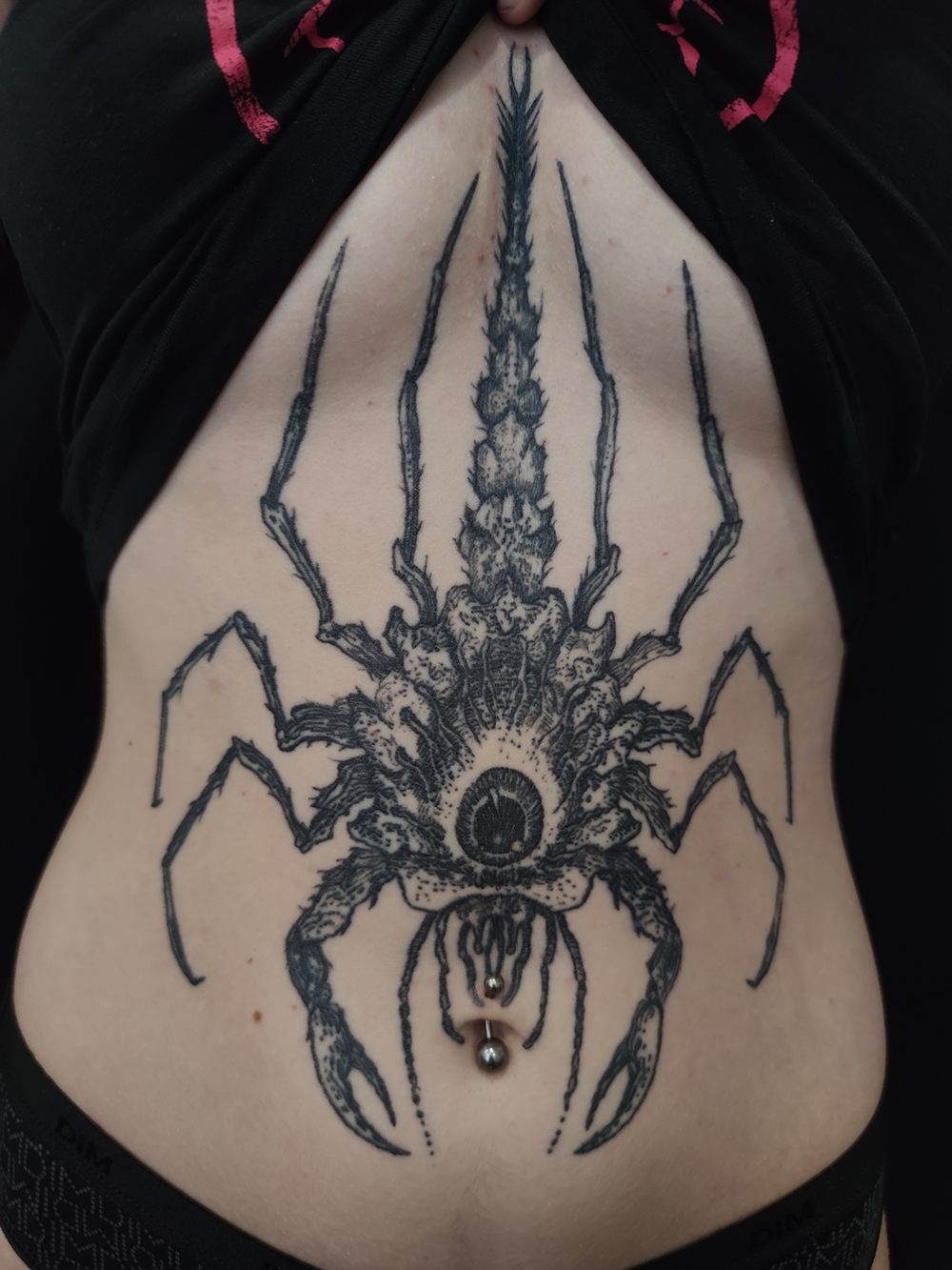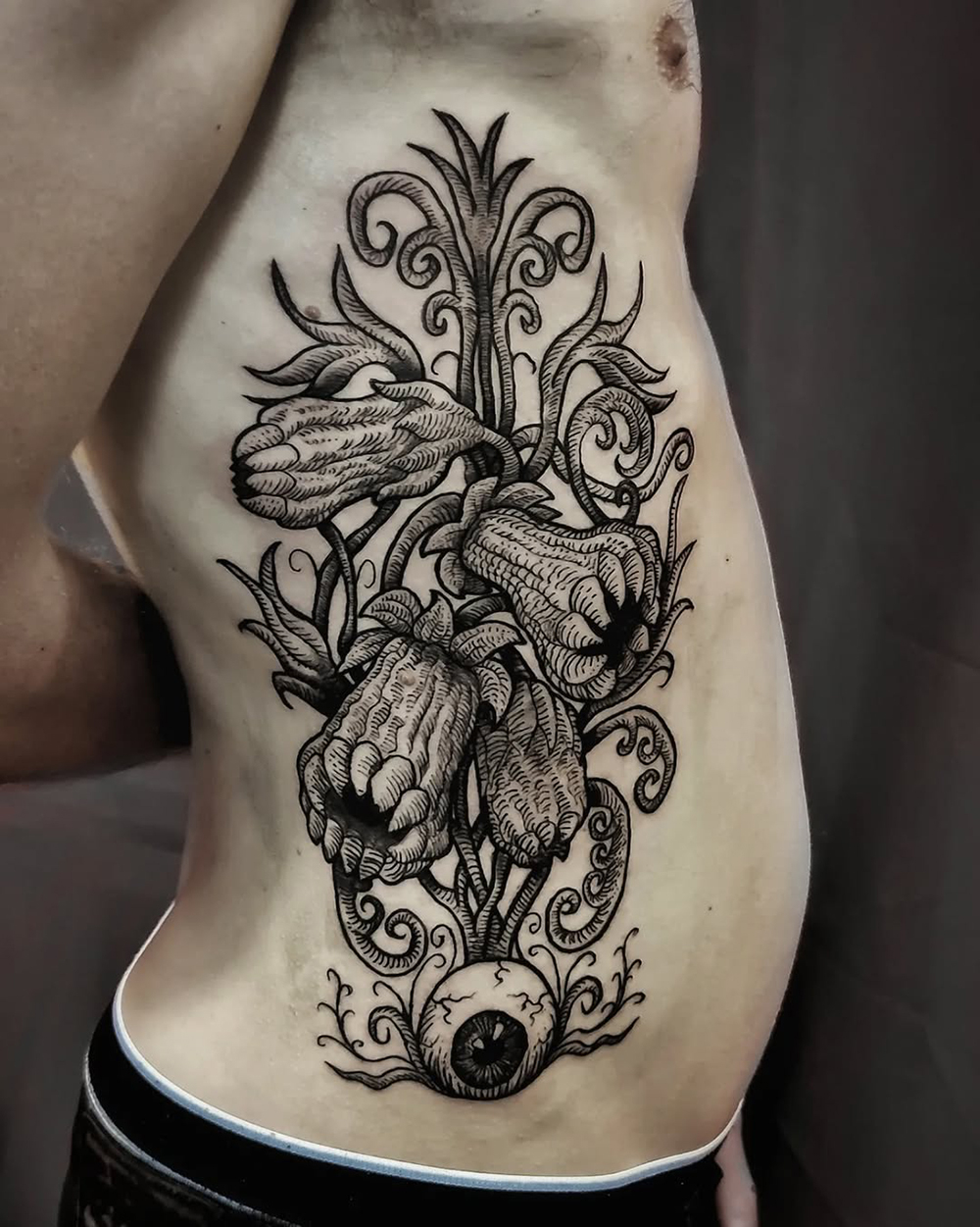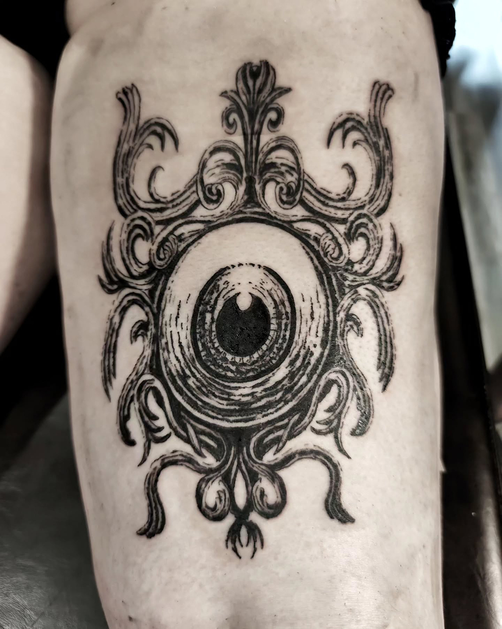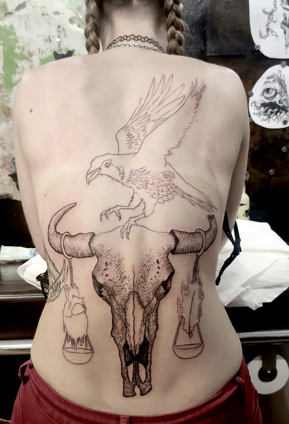 Les tattoos « moyens » ( entre un A6 et un A5 / 10 à 20cm ), surtout des flashs, un peu de freehand, un peu de custom… Beaucoup de globes oculaires…