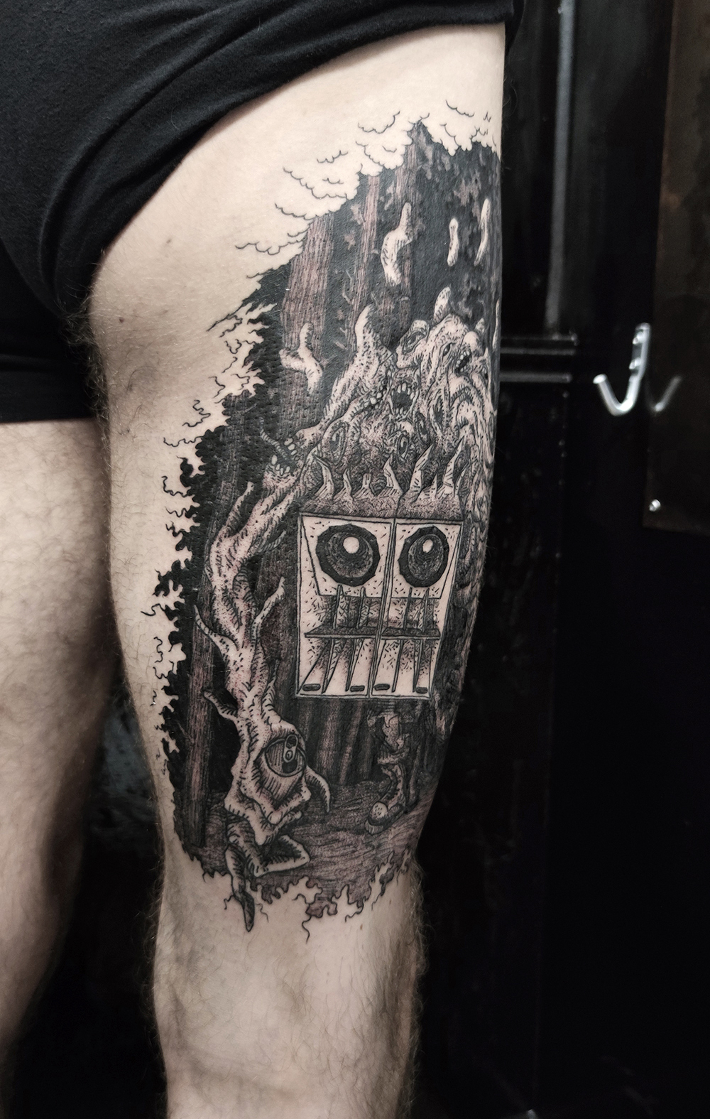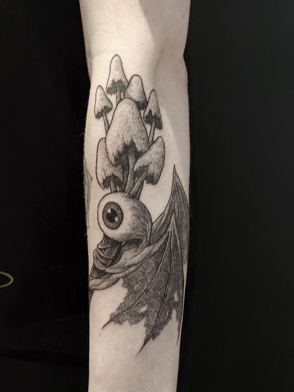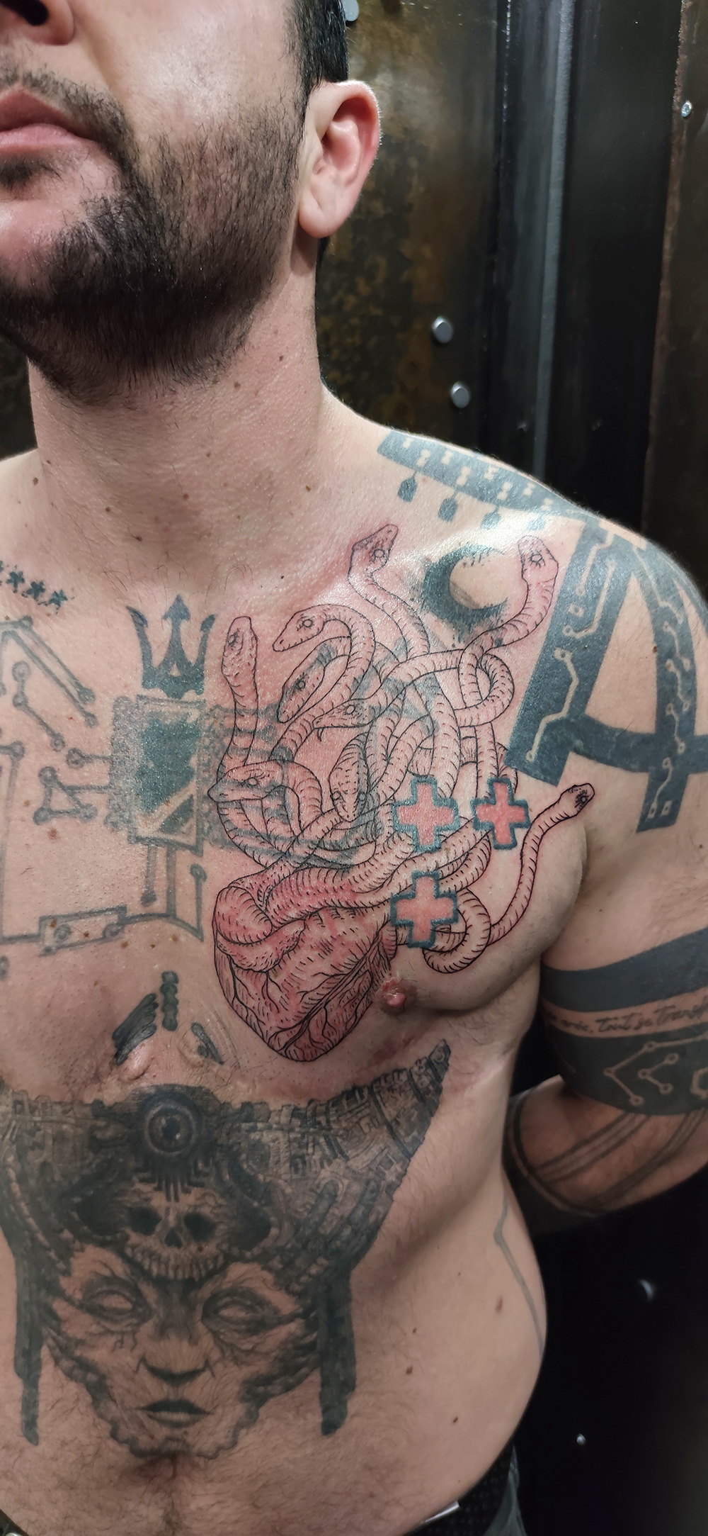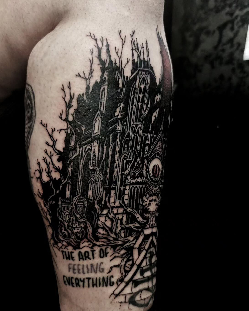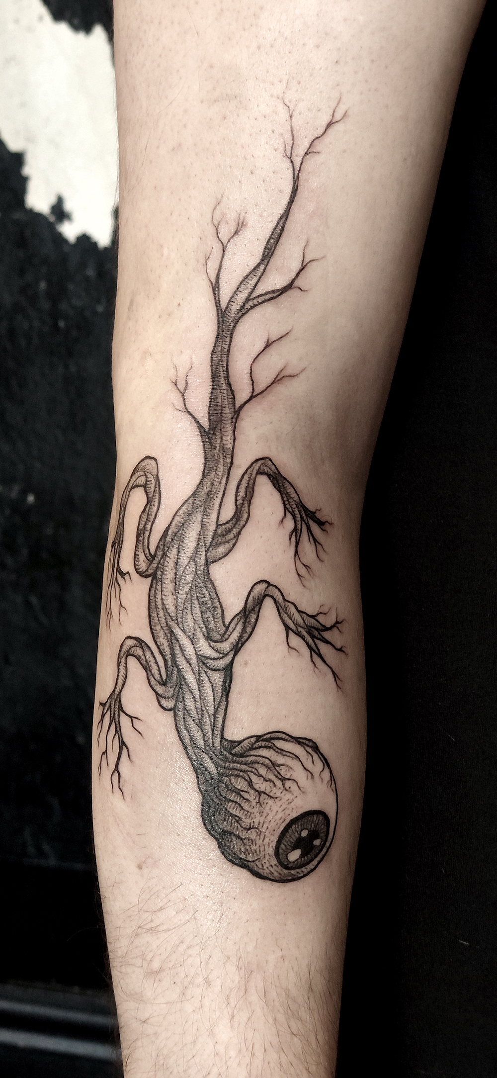 Les tattoos « moyens » ( entre un A6 et un A5 / 10 à 20cm ), surtout des flashs, un peu de freehand, un peu de custom… Beaucoup de globes oculaires…