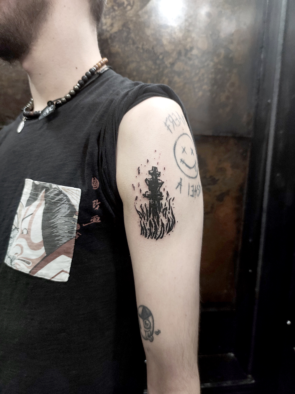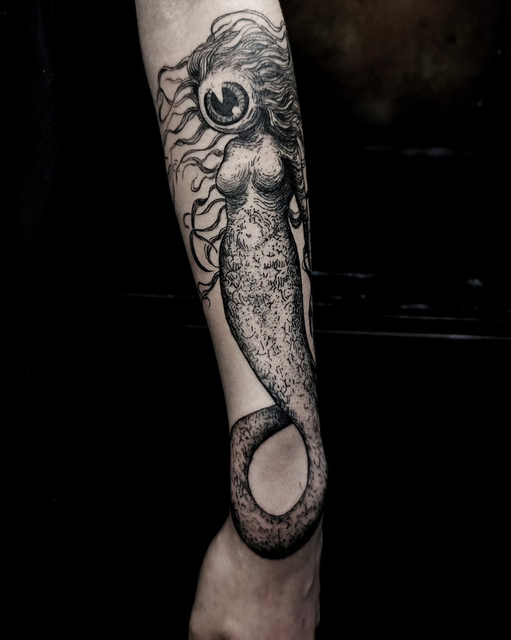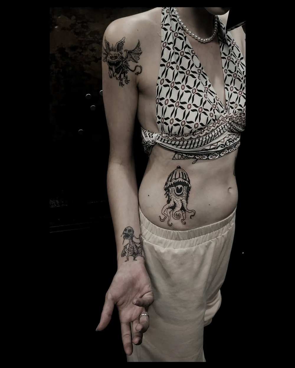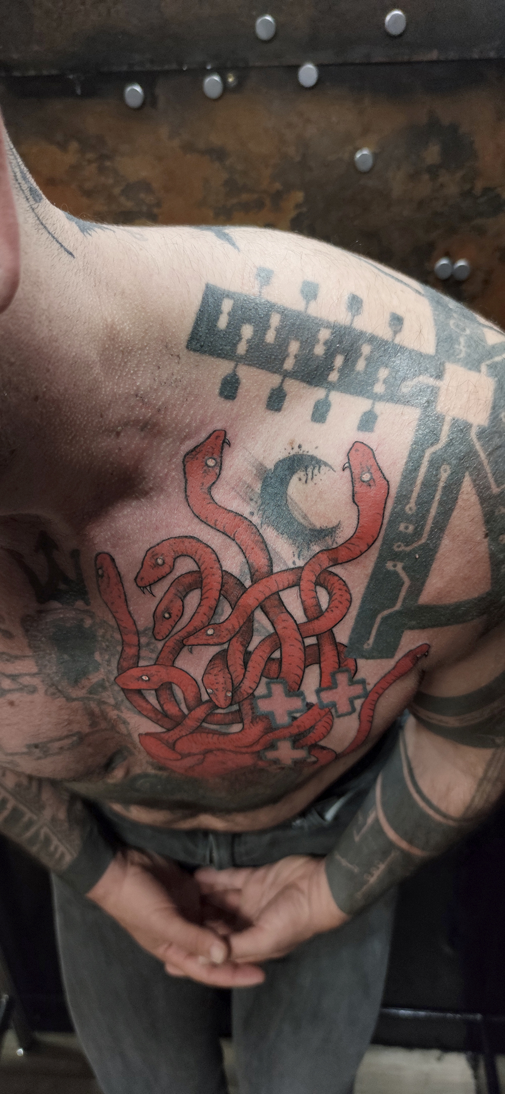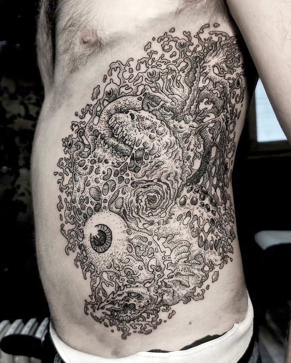 Les tattoos « moyens » ( entre un A6 et un A5 / 10 à 20cm ), surtout des flashs, un peu de freehand, un peu de custom… Beaucoup de globes oculaires…