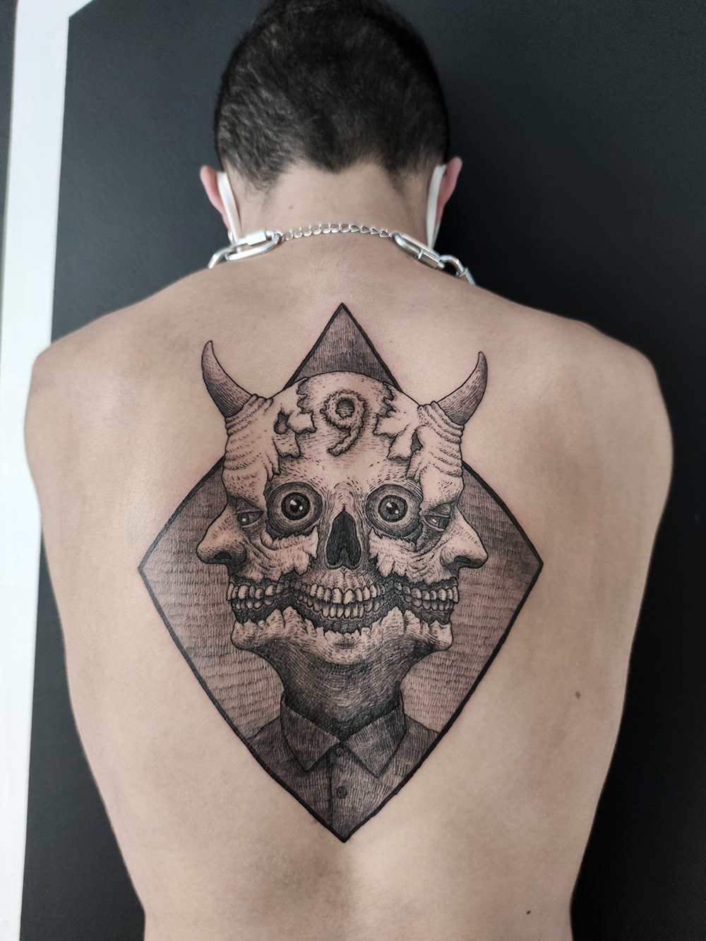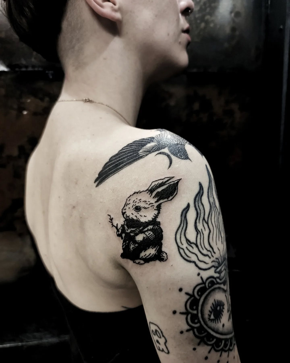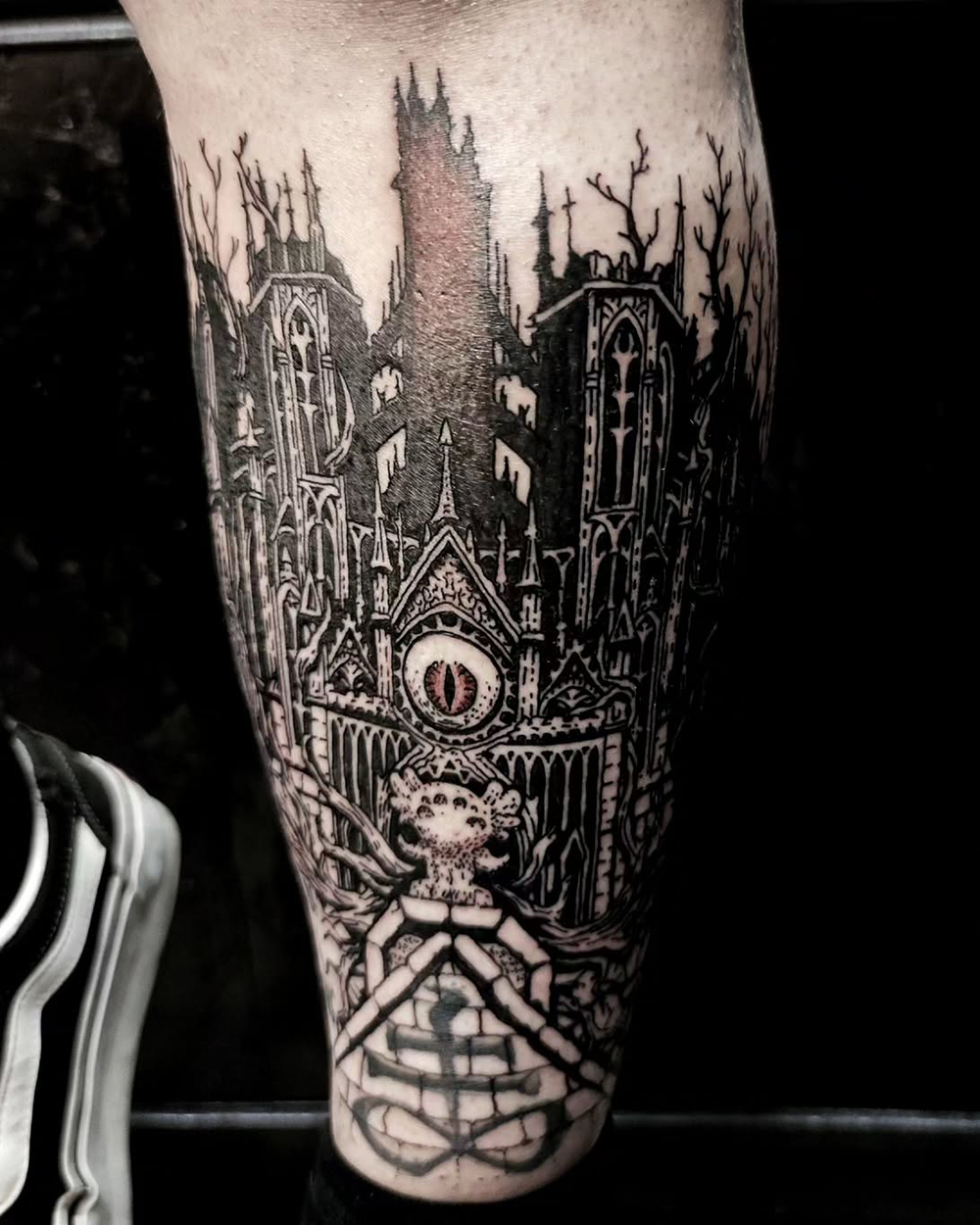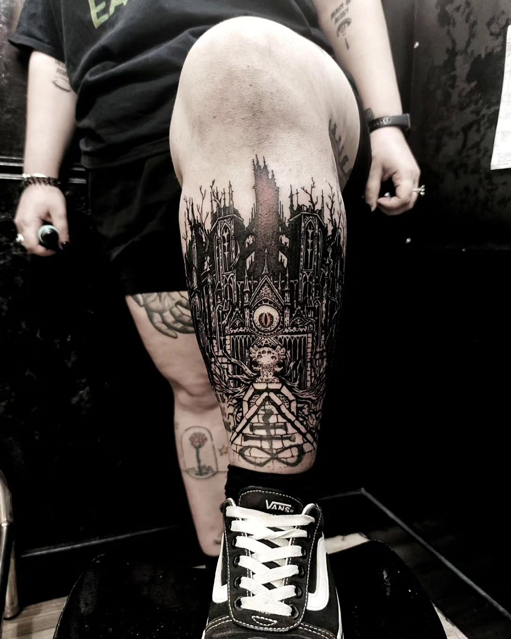 Les tattoos « moyens » ( entre un A6 et un A5 / 10 à 20cm ), surtout des flashs, un peu de freehand, un peu de custom… Beaucoup de globes oculaires…