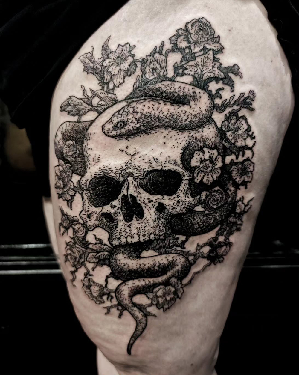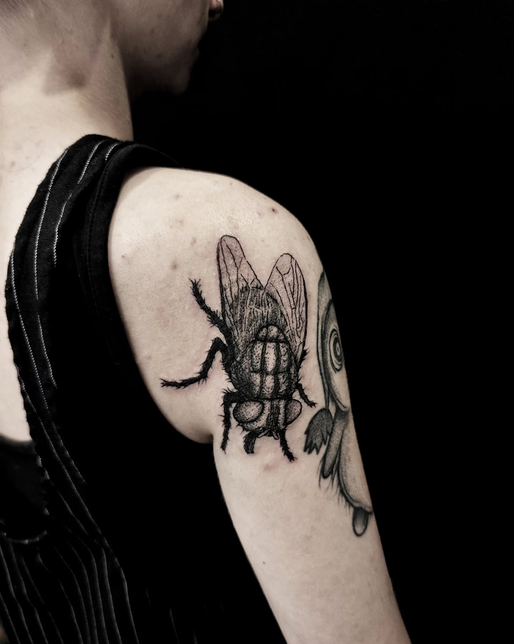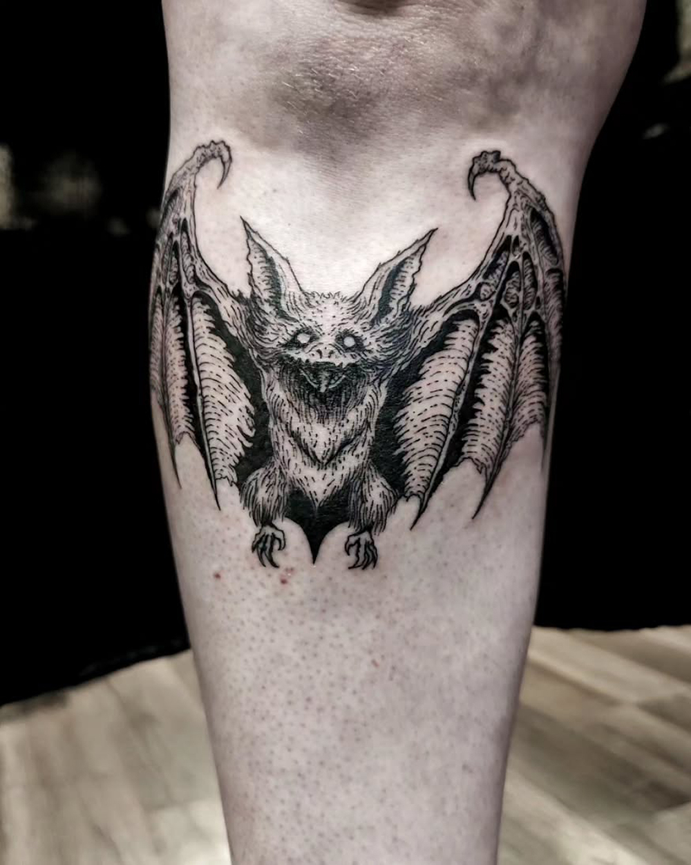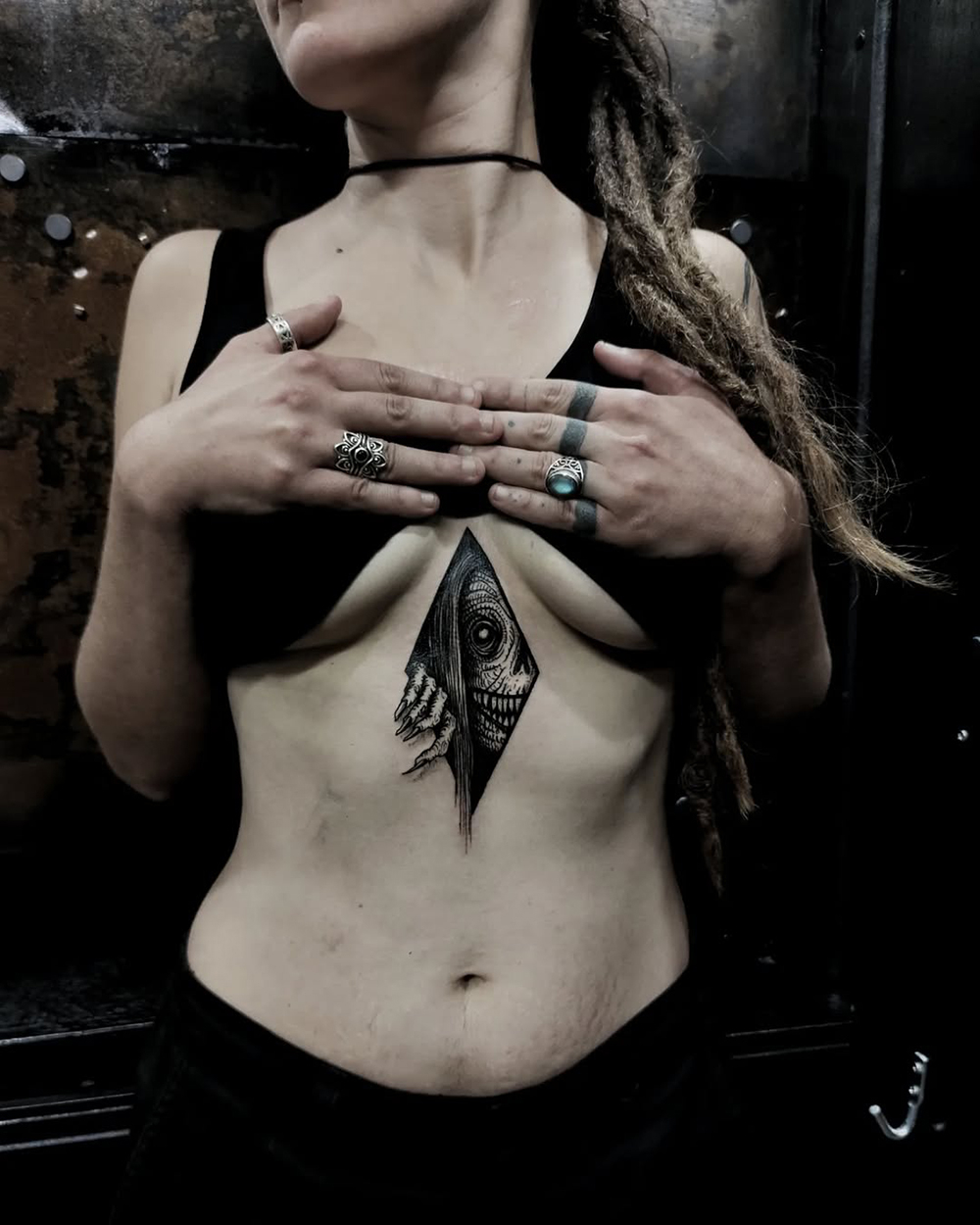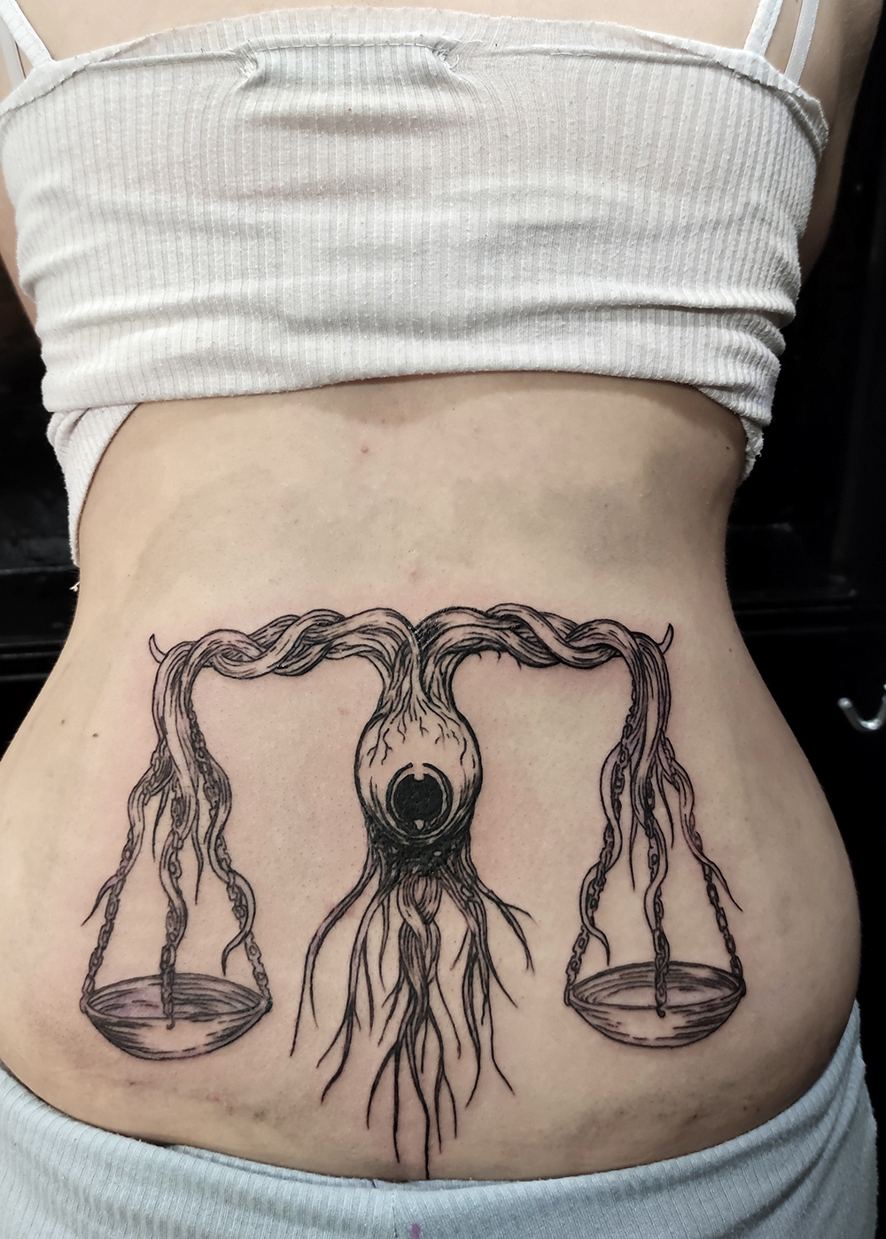 Les tattoos « moyens » ( entre un A6 et un A5 / 10 à 20cm ), surtout des flashs, un peu de freehand, un peu de custom… Beaucoup de globes oculaires…