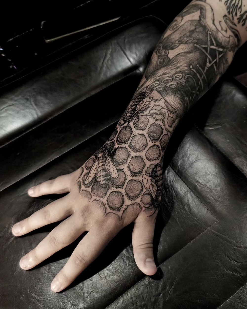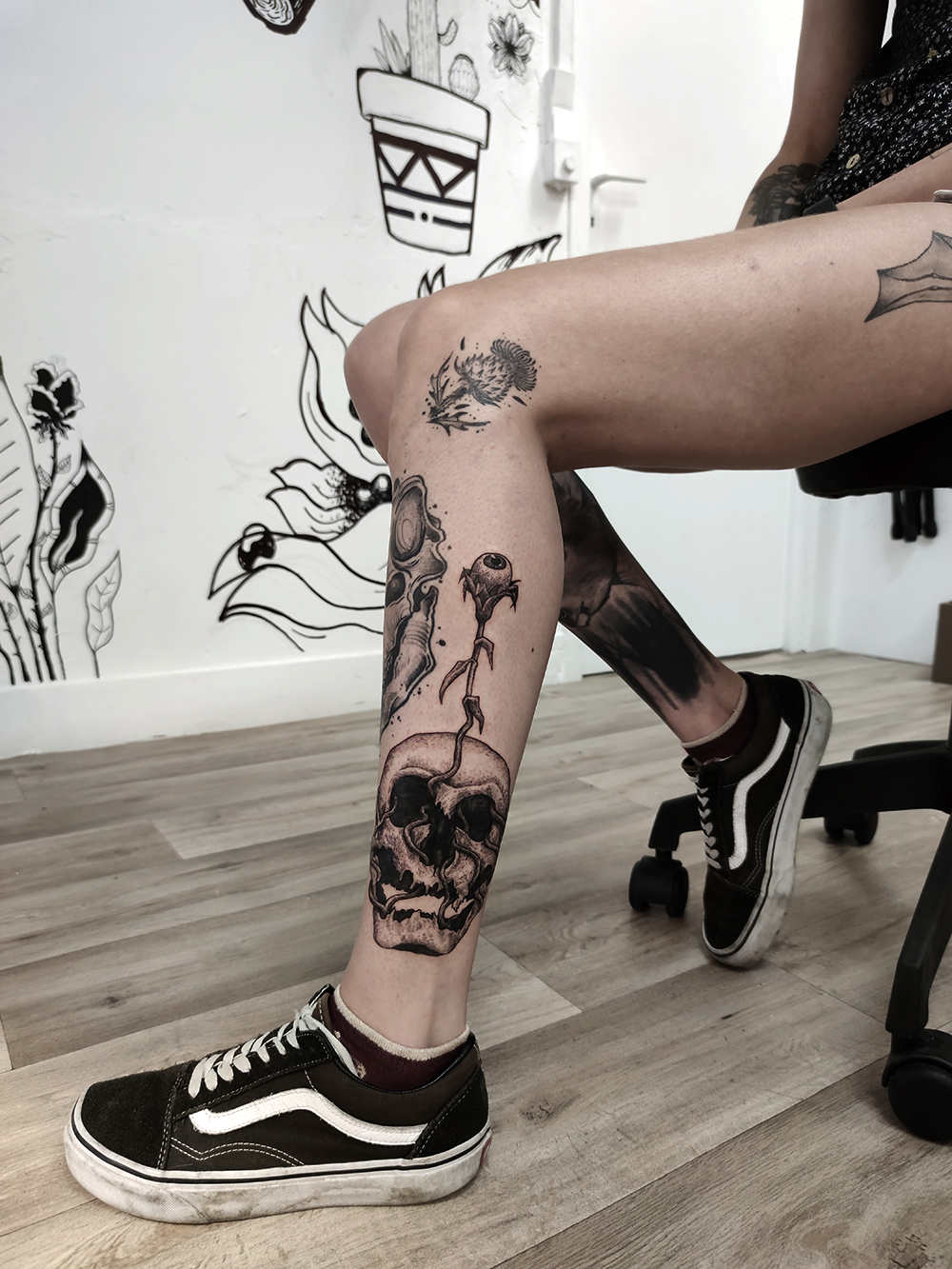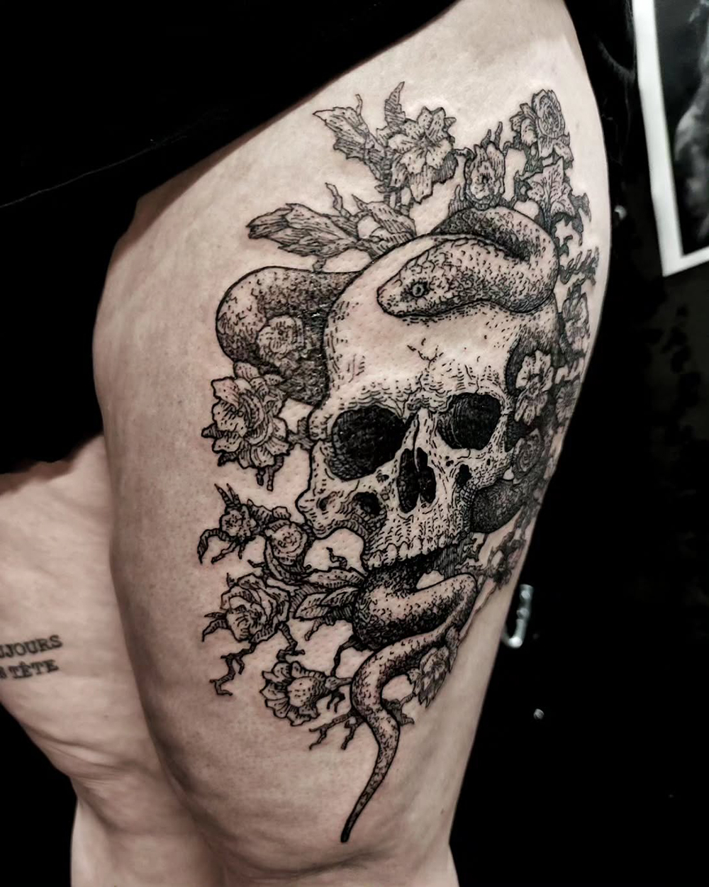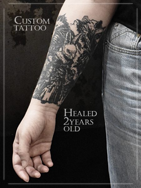 Les grands tattoos ( environ un A4 / 25-30cm) : y a du freehand, du gros flash/projet, du cover, du custom…